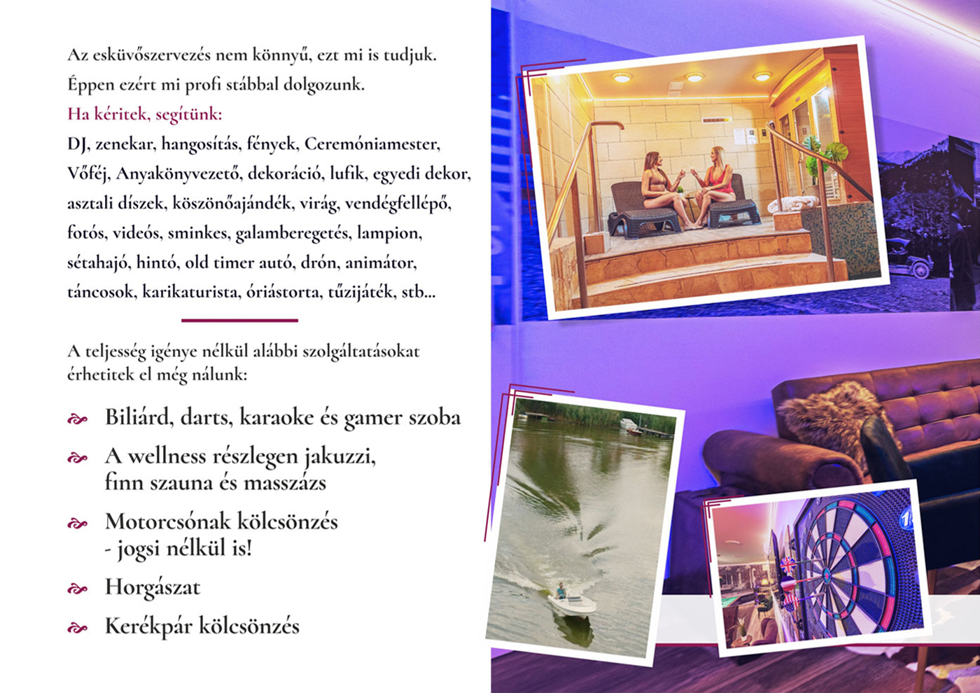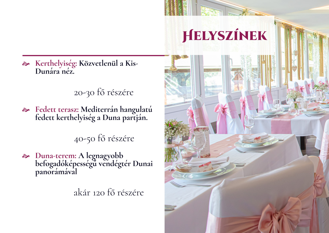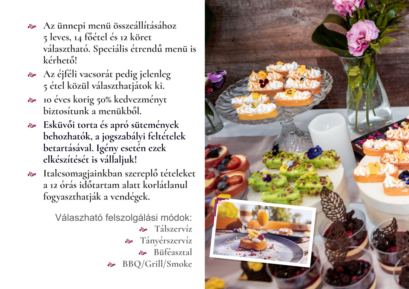 - esküvők éttermi szolgáltatása (terem+étel, ital)